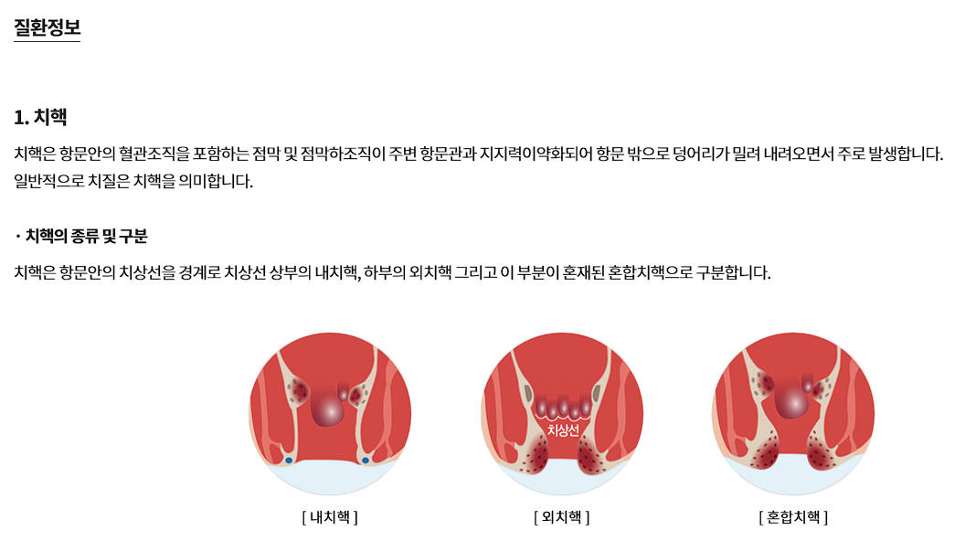 치질은 단순히 좌약으로만 완전히 치료되기 어려운 경우도 있습니다. 출혈이 지속되거나 증상이 악화되는 경우, 반드시 의료기관을 방문해 전문의의 진단을 받아야 하며, 무조건 약물 치료만으로 해결하려 해서는 안 됩니다.